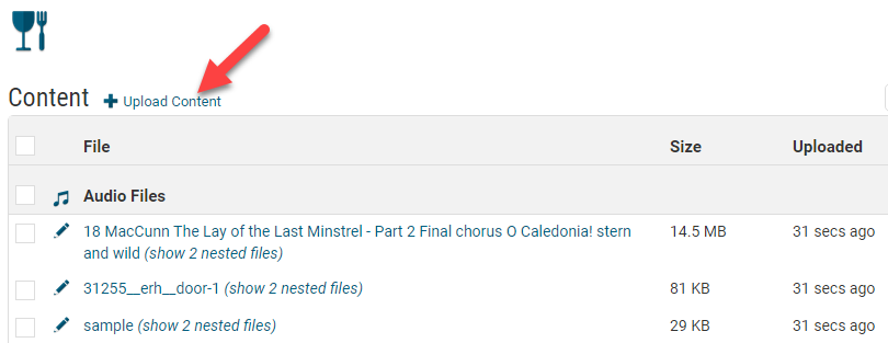 To get started with the Audio Player app, first upload some audio files on the Content page.